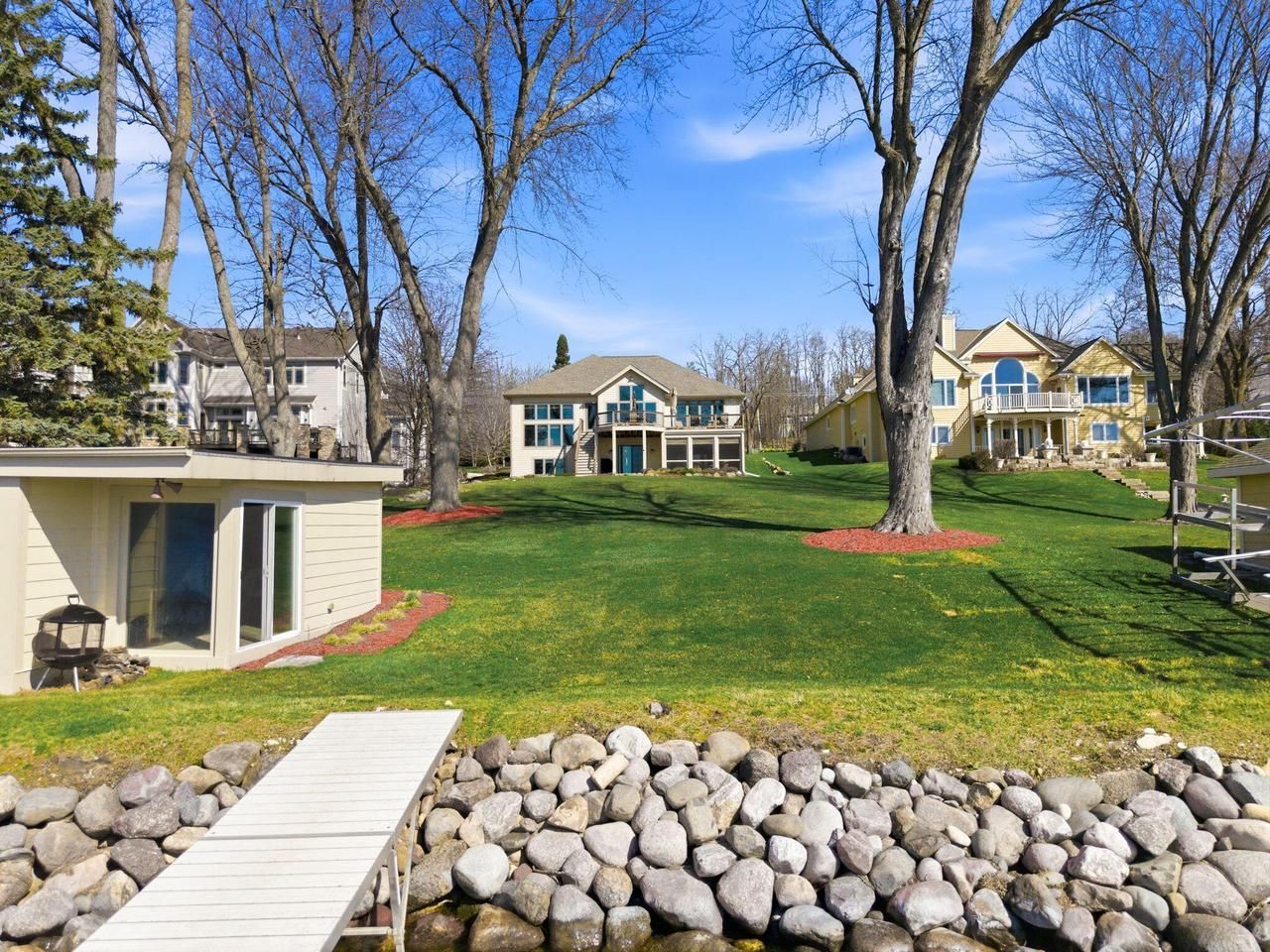 75' of frontage on Pewaukee Lake with southern exposure, big lake views, and a rare deep front yard. Newer ranch with 3BR, 3.5BA, room for a 4th bedroom, and a full walkout lower level. Open-concept main level with great natural light. Main floor primary suite. Finished the lower level for additional living and entertaining. 3-car garage, hard-bottom frontage, and boathouse at the water's edge. Rare Pewaukee Lake opportunity.